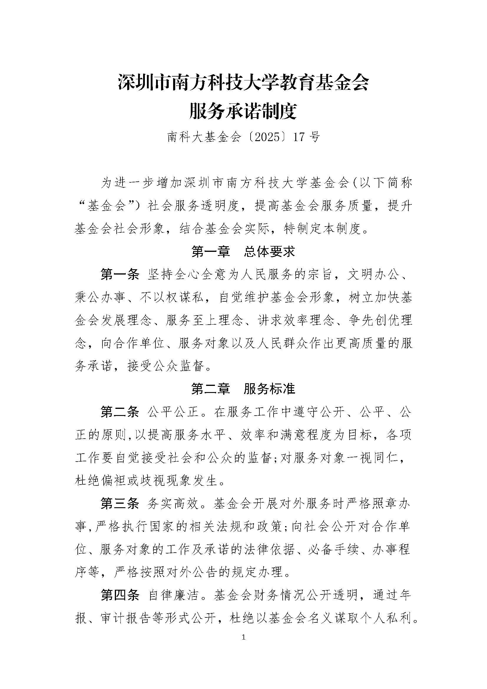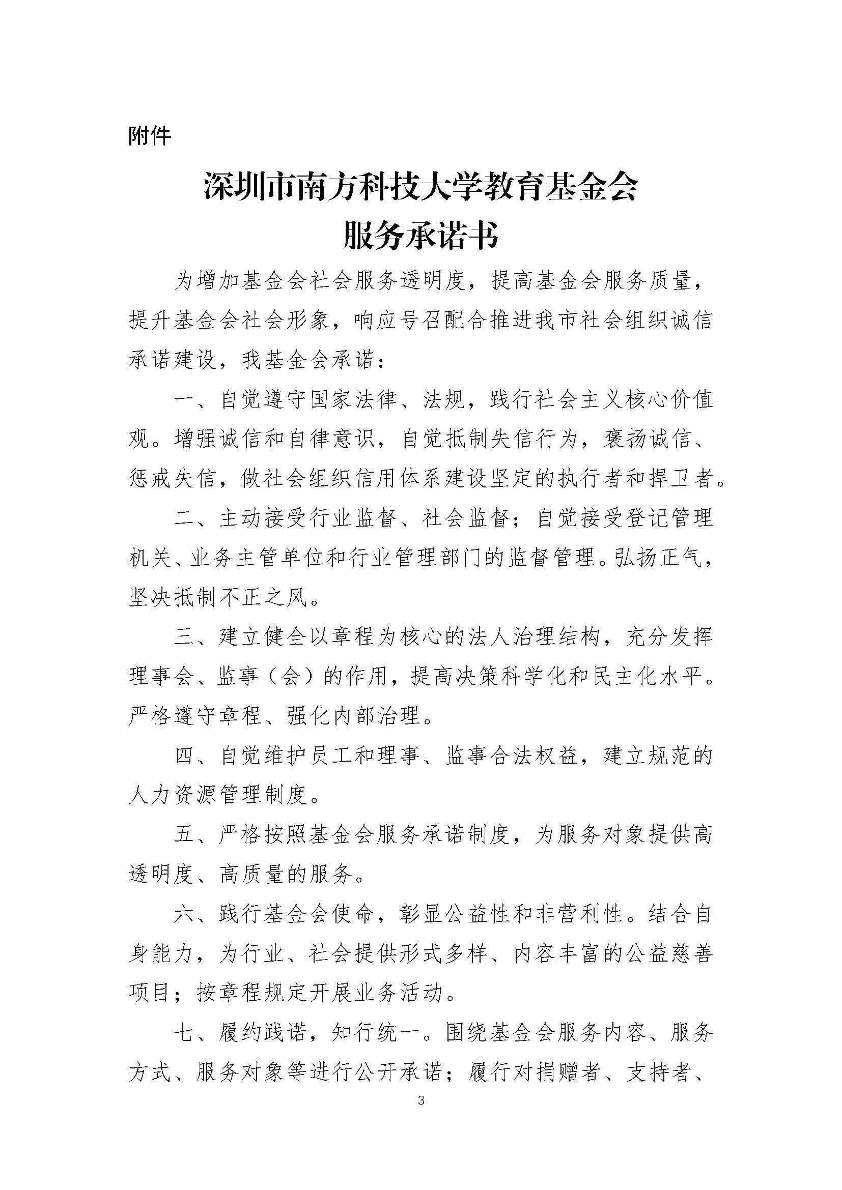 深圳市南方科技大学教育基金会服务承诺制度